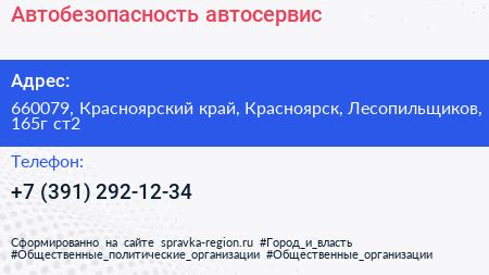 Автобезопасность, автосервис по адресу 660079, Красноярский край, Красноярск, Лесопильщиков, 165г ст2 в дальнейшем Организация, размещена в следующих категориях: