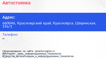 Автостоянка по адресу 660046, Красноярский край, Красноярск, Ширинская, 19а/1 в дальнейшем Организация, размещена в следующих категориях: