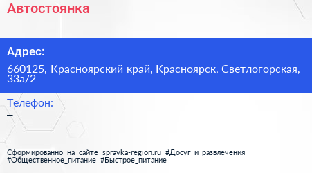 Автостоянка по адресу 660125, Красноярский край, Красноярск, Светлогорская, 33а/2 в дальнейшем Организация, размещена в следующих категориях: