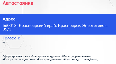Автостоянка по адресу 660013, Красноярский край, Красноярск, Энергетиков, 35/3 в дальнейшем Организация, размещена в следующих категориях: