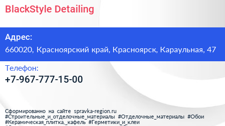BlackStyle Detailing по адресу 660020, Красноярский край, Красноярск, Караульная, 47 в дальнейшем Организация, размещена в следующих категориях: