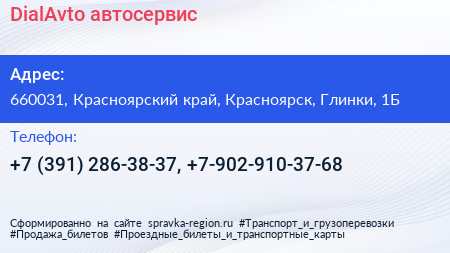 DialAvto, автосервис по адресу 660031, Красноярский край, Красноярск, Глинки, 1Б в дальнейшем Организация, размещена в следующих категориях: