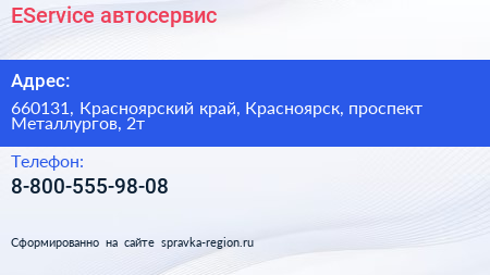 EService, автосервис по адресу 660131, Красноярский край, Красноярск, проспект Металлургов, 2т в дальнейшем Организация, размещена в следующих категориях: