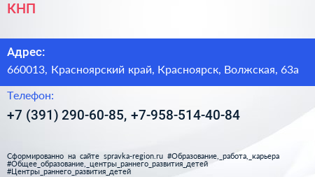 КНП по адресу 660013, Красноярский край, Красноярск, Волжская, 63а в дальнейшем Организация, размещена в следующих категориях:
