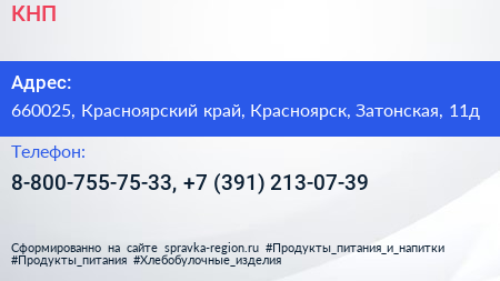 КНП по адресу 660025, Красноярский край, Красноярск, Затонская, 11д в дальнейшем Организация, размещена в следующих категориях: