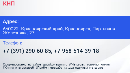 КНП по адресу 660022, Красноярский край, Красноярск, Партизана Железняка, 27 в дальнейшем Организация, размещена в следующих категориях: