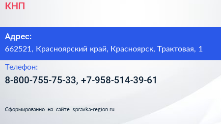 КНП по адресу 662521, Красноярский край, Красноярск, Трактовая, 1 в дальнейшем Организация, размещена в следующих категориях: