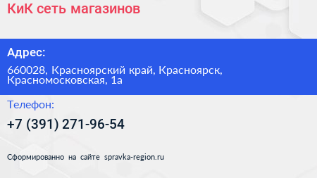 КиК, сеть магазинов по адресу 660028, Красноярский край, Красноярск, Красномосковская, 1а в дальнейшем Организация, размещена в следующих категориях: