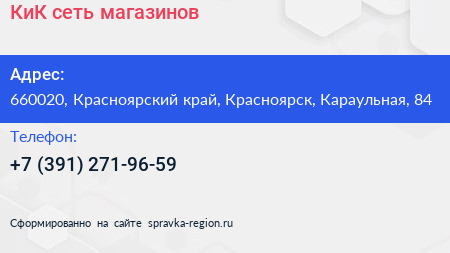 КиК, сеть магазинов по адресу 660020, Красноярский край, Красноярск, Караульная, 84 в дальнейшем Организация, размещена в следующих категориях: