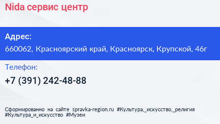 Nida, сервис-центр по адресу 660062, Красноярский край, Красноярск, Крупской, 46г в дальнейшем Организация, размещена в следующих категориях: