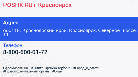 POSHK.RU, г. Красноярск по адресу 660118, Красноярский край, Красноярск, Северное шоссе, 11 в дальнейшем Организация, размещена в следующих категориях:
