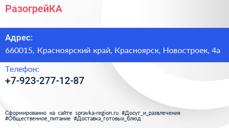 РазогрейКА по адресу 660015, Красноярский край, Красноярск, Новостроек, 4а в дальнейшем Организация, размещена в следующих категориях:
