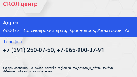 СКОЛ, центр по адресу 660077, Красноярский край, Красноярск, Авиаторов, 7а в дальнейшем Организация, размещена в следующих категориях: