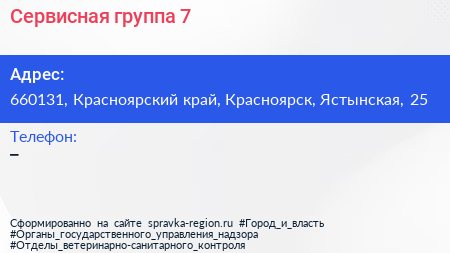 Сервисная группа 7 по адресу 660131, Красноярский край, Красноярск, Ястынская, 25 в дальнейшем Организация, размещена в следующих категориях: