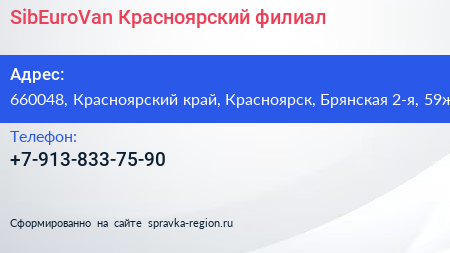 SibEuroVan, Красноярский филиал по адресу 660048, Красноярский край, Красноярск, Брянская 2-я, 59ж в дальнейшем Организация, размещена в следующих категориях: