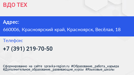 ВДО-ТЕХ по адресу 660006, Красноярский край, Красноярск, Весёлая, 18 в дальнейшем Организация, размещена в следующих категориях: