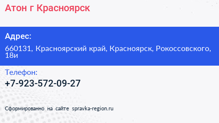 Атон, г. Красноярск по адресу 660131, Красноярский край, Красноярск, Рокоссовского, 18и в дальнейшем Организация, размещена в следующих категориях: