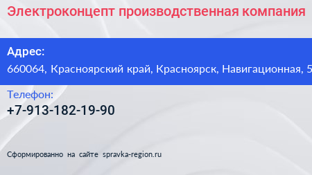 Электроконцепт, производственная компания по адресу 660064, Красноярский край, Красноярск, Навигационная, 5 в дальнейшем Организация, размещена в следующих категориях: