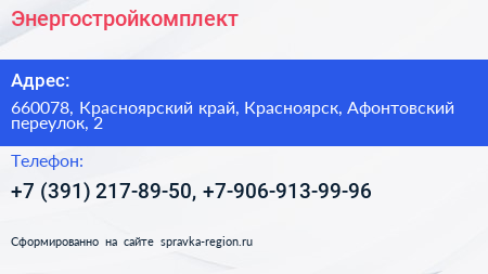 Энергостройкомплект по адресу 660078, Красноярский край, Красноярск, Афонтовский переулок, 2 в дальнейшем Организация, размещена в следующих категориях: