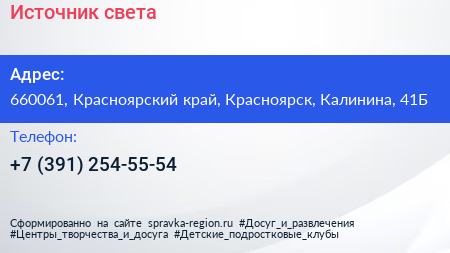 Источник света по адресу 660061, Красноярский край, Красноярск, Калинина, 41Б в дальнейшем Организация, размещена в следующих категориях: