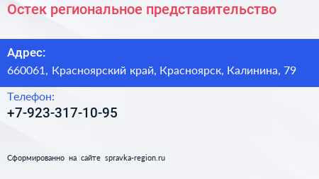 Остек, региональное представительство по адресу 660061, Красноярский край, Красноярск, Калинина, 79 в дальнейшем Организация, размещена в следующих категориях: