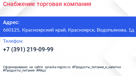 Снабжение, торговая компания по адресу 660125, Красноярский край, Красноярск, Водопьянова, 1д в дальнейшем Организация, размещена в следующих категориях: