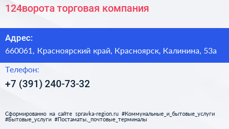 124ворота, торговая компания по адресу 660061, Красноярский край, Красноярск, Калинина, 53а в дальнейшем Организация, размещена в следующих категориях: