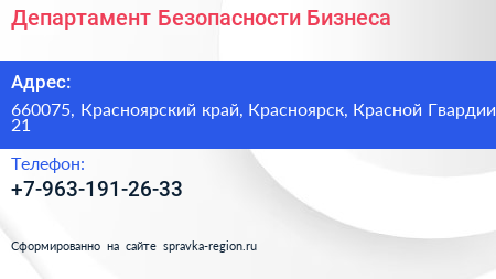 Департамент Безопасности Бизнеса по адресу 660075, Красноярский край, Красноярск, Красной Гвардии, 21 в дальнейшем Организация, размещена в следующих категориях: