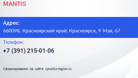 MANTIS по адресу 660098, Красноярский край, Красноярск, 9 Мая, 67 в дальнейшем Организация, размещена в следующих категориях: