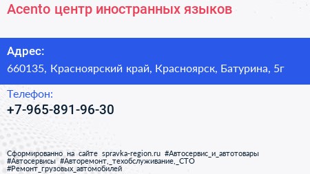 Acento, центр иностранных языков по адресу 660135, Красноярский край, Красноярск, Батурина, 5г в дальнейшем Организация, размещена в следующих категориях: