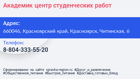 Академик, центр студенческих работ по адресу 660046, Красноярский край, Красноярск, Читинская, 6 в дальнейшем Организация, размещена в следующих категориях: