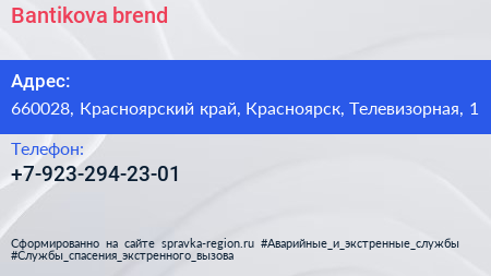 Bantikova.brend по адресу 660028, Красноярский край, Красноярск, Телевизорная, 1 в дальнейшем Организация, размещена в следующих категориях: