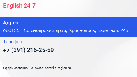 #English 24/7 по адресу 660135, Красноярский край, Красноярск, Взлётная, 24а в дальнейшем Организация, размещена в следующих категориях: