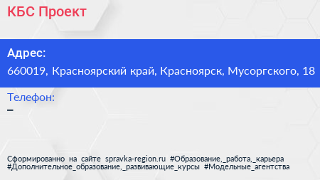 КБС-Проект по адресу 660019, Красноярский край, Красноярск, Мусоргского, 18 в дальнейшем Организация, размещена в следующих категориях: