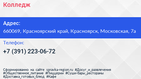 Колледж по адресу 660069, Красноярский край, Красноярск, Московская, 7а в дальнейшем Организация, размещена в следующих категориях: