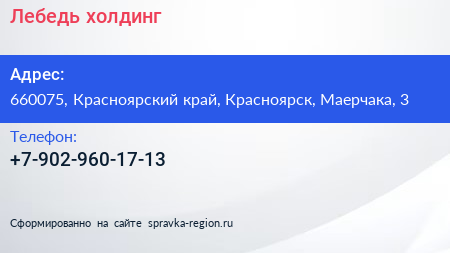 Лебедь, холдинг по адресу 660075, Красноярский край, Красноярск, Маерчака, 3 в дальнейшем Организация, размещена в следующих категориях: