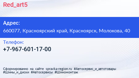 Red_art5 по адресу 660077, Красноярский край, Красноярск, Молокова, 40 в дальнейшем Организация, размещена в следующих категориях:
