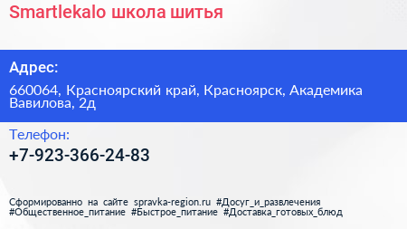 Smartlekalo, школа шитья по адресу 660064, Красноярский край, Красноярск, Академика Вавилова, 2д в дальнейшем Организация, размещена в следующих категориях: