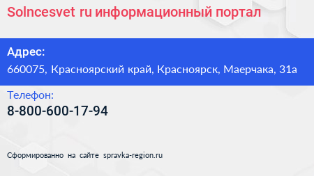 Solncesvet.ru, информационный портал по адресу 660075, Красноярский край, Красноярск, Маерчака, 31а в дальнейшем Организация, размещена в следующих категориях:
