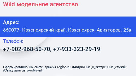 Wild, модельное агентство по адресу 660077, Красноярский край, Красноярск, Авиаторов, 25а в дальнейшем Организация, размещена в следующих категориях:
