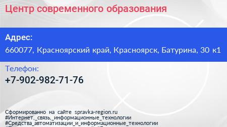 Центр современного образования по адресу 660077, Красноярский край, Красноярск, Батурина, 30 к1 в дальнейшем Организация, размещена в следующих категориях: