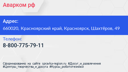 Аварком.рф по адресу 660020, Красноярский край, Красноярск, Шахтёров, 49 в дальнейшем Организация, размещена в следующих категориях: