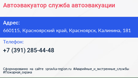 Автоэвакуатор, служба автоэвакуации по адресу 660115, Красноярский край, Красноярск, Калинина, 181 в дальнейшем Организация, размещена в следующих категориях: