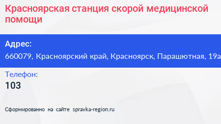 Красноярская станция скорой медицинской помощи по адресу 660079, Красноярский край, Красноярск, Парашютная, 19а в дальнейшем Организация, размещена в следующих категориях: