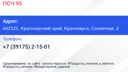 ПСЧ-95 по адресу 662521, Красноярский край, Красноярск, Солнечная, 2 в дальнейшем Организация, размещена в следующих категориях: