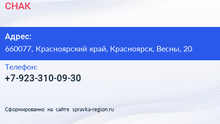 СНАК по адресу 660077, Красноярский край, Красноярск, Весны, 20 в дальнейшем Организация, размещена в следующих категориях: