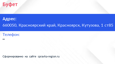 Буфет по адресу 660050, Красноярский край, Красноярск, Кутузова, 1 ст85 в дальнейшем Организация, размещена в следующих категориях: