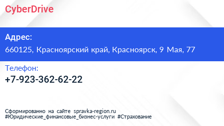 CyberDrive по адресу 660125, Красноярский край, Красноярск, 9 Мая, 77 в дальнейшем Организация, размещена в следующих категориях: