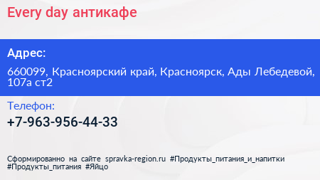 Every day, антикафе по адресу 660099, Красноярский край, Красноярск, Ады Лебедевой, 107а ст2 в дальнейшем Организация, размещена в следующих категориях: