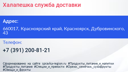 Халапешка, служба доставки по адресу 660017, Красноярский край, Красноярск, Дубровинского, 43 в дальнейшем Организация, размещена в следующих категориях: